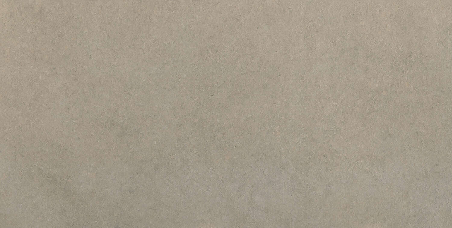 A neutral grey with a richly detailed granular aesthetic made of tiny shells, grains, aggregates, and impurities, fused into an elaborate archaic texture of tone-on-tone fossils. Warm grey and cashew are speckled with small moss rings and darker stone-washed dashes, in Stone finish.