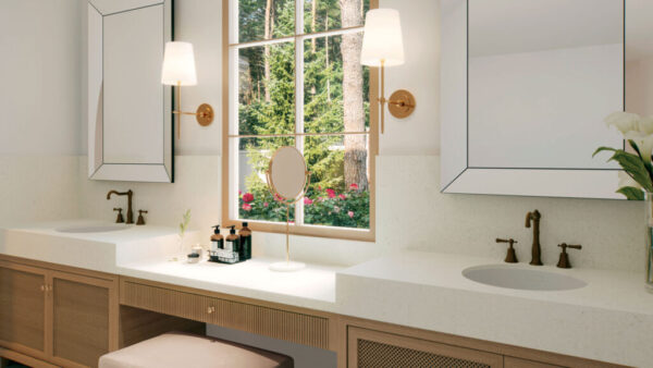 A gentle off-white touched by honied-amber capillaries that flow softly across the surface,with Honed finish for a tinge of freshness that reflects more light in the kitchen.